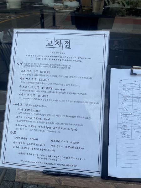 주방이 오픈 주방인데 굉장히 조용하다. 다들 조용조용 요리하시고 조용조용 서빙하시고 손님들도 조용조용 식사한다. 어떤 이유로 가게 이름이 교차점인지는 모르나 간간히 음식에서 벽에 붙여진 포스터에서 이곳이 교차점임을 살짝 살짝 외치고 있다.